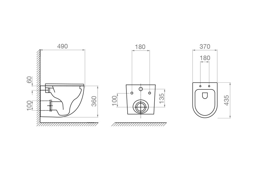 WC Erida Rimless Wall Hung 490x360x370mm